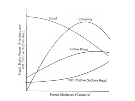 원심 펌프의 유압 계산을 하기 위해서는 펌프의 특성곡선을 이용하는 것이 가장 일반적인 접근이다. 위의 그림에서는 유량 범위에 대한 원심 펌프의 성능을 이해하는 데 사용되는 주요 펌프 특성 곡선을 살펴볼 수 있습니다.